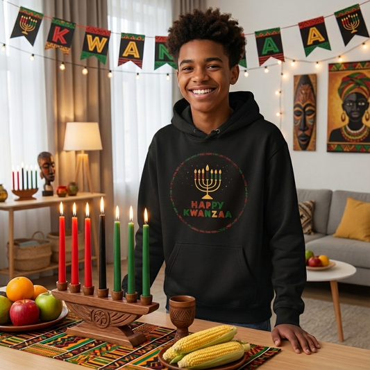 Happy Kwanzaa Unisex Hoodie for Entire Family – Circle Kinara Design - Youth